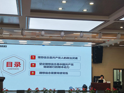 徐老师结合二万五千里长征中的革命先烈是一次理想信念的伟大远征;在当时中国经济落后、科研薄弱、资金困难的情况下,为了国家的安全、民族的崛起,“两弹一星”等广大科技工作者以坚定的理想信念,舍小家为国家,创造出非凡成就;中国改革开放历经苦难而淬火成钢,归根到底在于心中的远大理想,革命信念始终坚定执着,对马克思主义的信仰,是中国革命胜利的一种精神动力等几个方面阐释了理想信念是立党兴党之基。