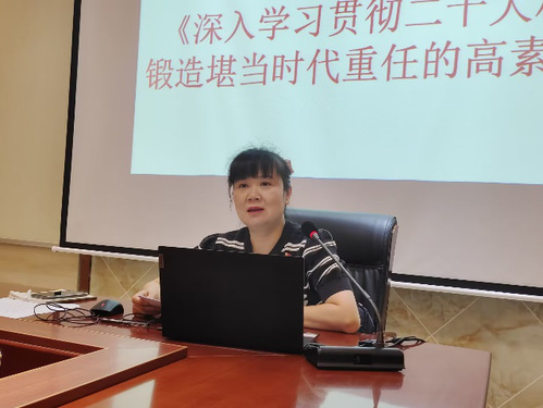 百瑞景社区党委书记王涯琳同志为参会人员做题为《深入学习贯彻党的二十大精神,锻造堪当时代重任的高素质党员队伍》党课分享讲解