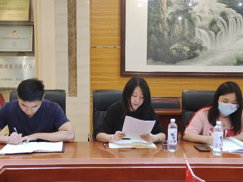 百瑞景社区青年党员雷潇琨同志带领大家学习“浦江经验”文件